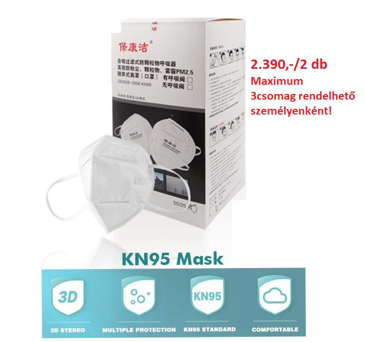 KN95 FFP2 arcmaszk, 2 db/ csomag 2.390 Ft így 1db 1.195 Ft