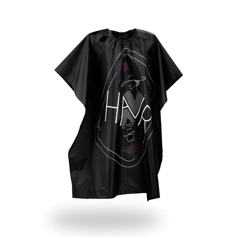 Hajvágó kendő. 130x 150cm. Vízlepergető Polyester. Gumirozott nyakrész. Kapcsos rögzítés. Mosógépben alacsony hőfokon mosható.