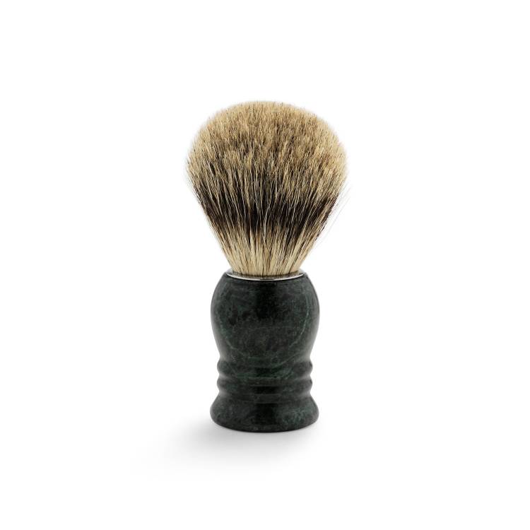 Borotvapamacs márványból és tömör borz sörtékből, minőségi „Silvertip borz”. A sörték nagy mennyiségű vizet képesek visszatartani, ezért puha és krémes borotválkozási krémet hoznak létre.