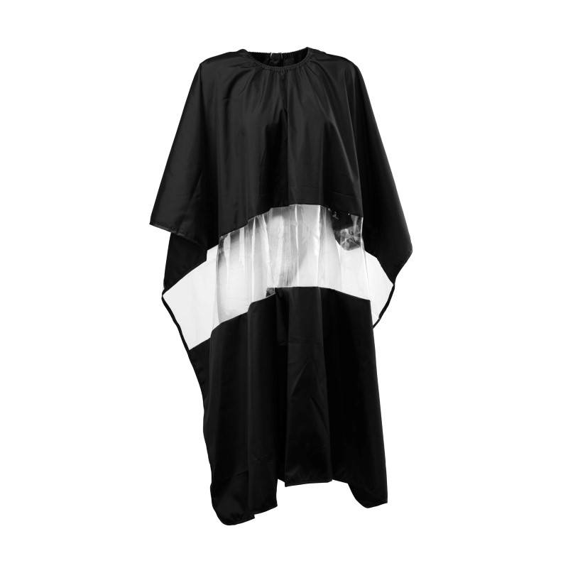 Hajvágó kendő. Speciális kialakításu hajvágókendő átlátszó rész mobil telefon illetve tablet nek, hogy a vendég a szolgáltatás alatt is zavartalanul tudjon kommunikálni. Nyersselyem. Szőtt és átlátszó műanyag. Vízlepergető.