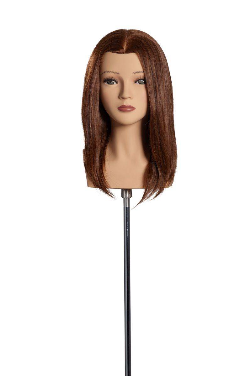 A 30cm hosszú, 135g, indiai emberi haj világosbarna, 9-es színmélységű, és elölről hátrafelé beültetett. A szemléltető babafej alkalmas nemzeti és nemzetközi versenyekre.