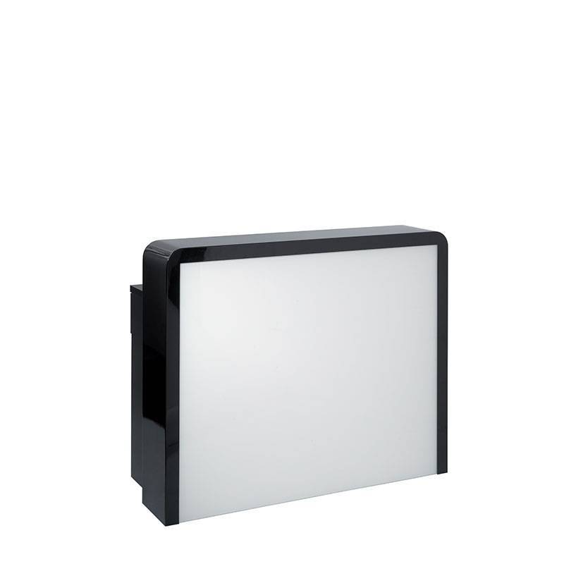 Recepciós pult. Vízálló felületű és festett fémlemez. Hátsó megvilágítású edzett üveg elülső rész.