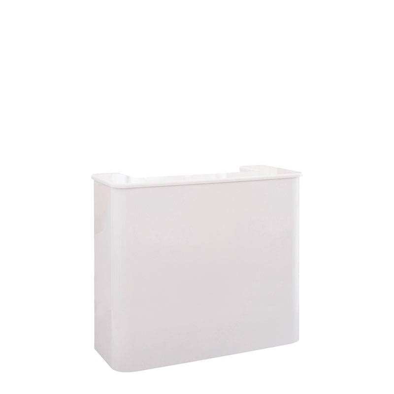 Recepciós pult. Fehér / fekete vízálló felületű keret, elefántcsont hatású porréteggel ellátott fémlemez elöl. MDF tető polimer papírral borítva.