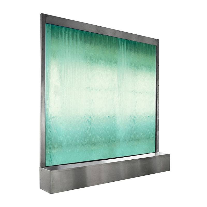 Rozsdamentes acél keret laminált üveggel és merülő vízszivattyúval az alapban.