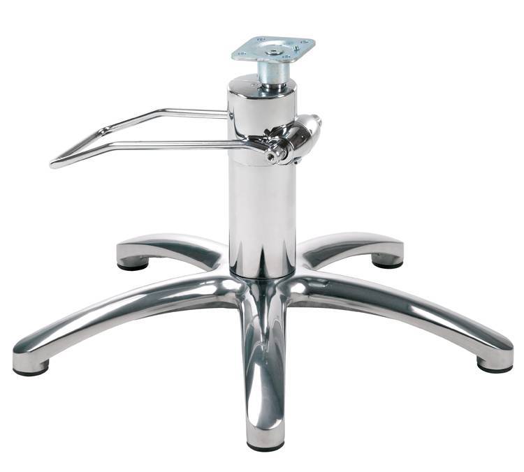 Base with 5 spokes, made of polished aluminium, with self-locking hydraulic pump.