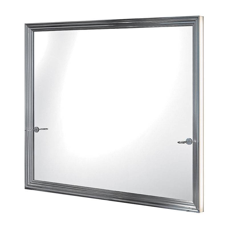 Kétszemélyes, szabadon álló tükrös munkahely. Falra szerelt csiszolt alumínium és fehér vízálló keret. Tükör beépítve a keretbe. Körbe futó LED- es háttérvilágítás Plexi- üveggel fedve. Beépített krómozott acél hajszárító tartóval.