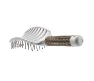 Professzionális hajkefe. Szárító kefe. Hajlított formája miatt felveszi a fej formáját, ezáltal a hajtövet meg lehet emelni. A hő lamellák miatt optimálisabb a hőleadás, könnyebb, intenzívebb a hajszárítás. Gumi bevonatú nyél rész.