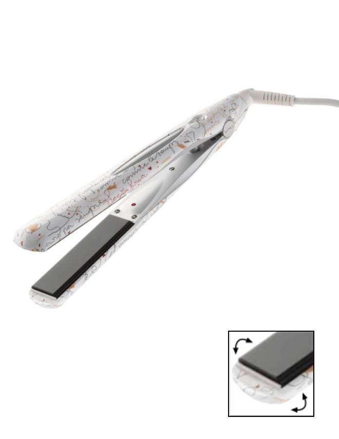 Professzionális simítóvas. Tourmalin kristály bevonat. Emiatt jobb a hőleadás. A hajban tartja a nedvességet, összehúzza a hajvéget, nem lesz szsöszös a haj. Rugós fej kivitel, emiatt kényelmesebb a munka. Gömbcsuklós vég. 210C- ra melegszik fel.