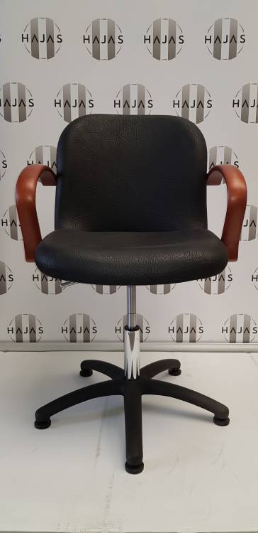 Vendégszék. Fa karfával. Gázrugós lábbal. Fekete huzattal.