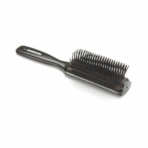 9 soros műanyag tüskékkel. Antisztatikus gumi párnázat. Ideális hosszabb, vastagabb hajnál. A Vess Ceramic Brush kefék fejlett technológiával készültek, hőálló kerámiából és antibakteriális nylon bevonattal a sörtéken, amelyek gyengédek a fejbőröz és tartósak. Ezek a kefék nagyon könnyűek és az ergonomikus kialakításnak köszönhetően rendkívül egyszerű a használatuk. Az ívelt formájú párna elősegíti,hogy természetes legyen a kézben és könnyedén megemelje a hajtövet ezáltal bármilyen forma elkészítésére alkalmas és a hajszárítást is gördülékennyé teszi.