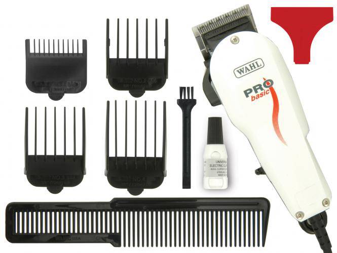 Professzionális hajvágógép. Extra hosszú vezeték. Kiegészítők: 4 darab műanyag fésűtoldalék 3/6/10/13 mm, tisztító kefe, műanyag fésű, olaj.